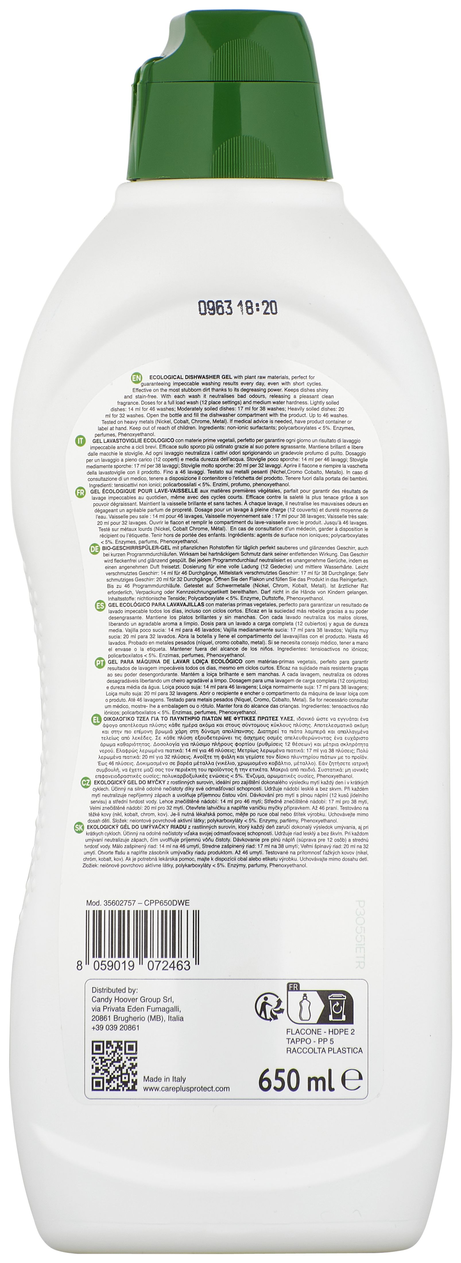 Care + Protect CPP650DWE, Geschirrspülmittel + Klarspüler + Salz, Gel, 650 ml, 650 g, 1 Stück(e), Italien