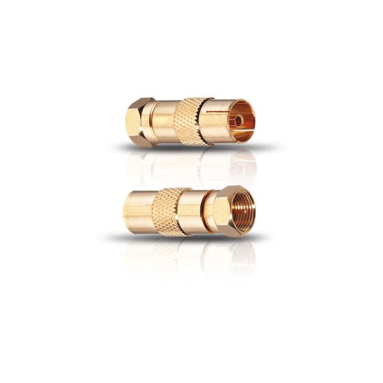 Hochwertige Verbindungadapter von Antennestecker auf F-Stecker, 1x männlich - 1x weiblich.
