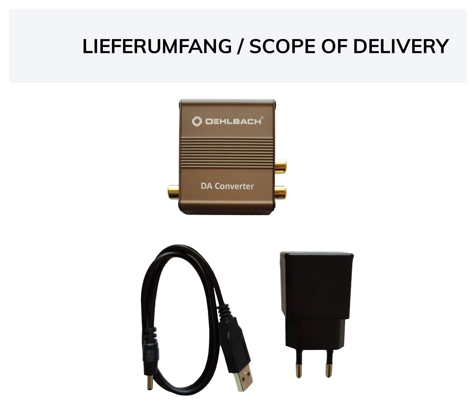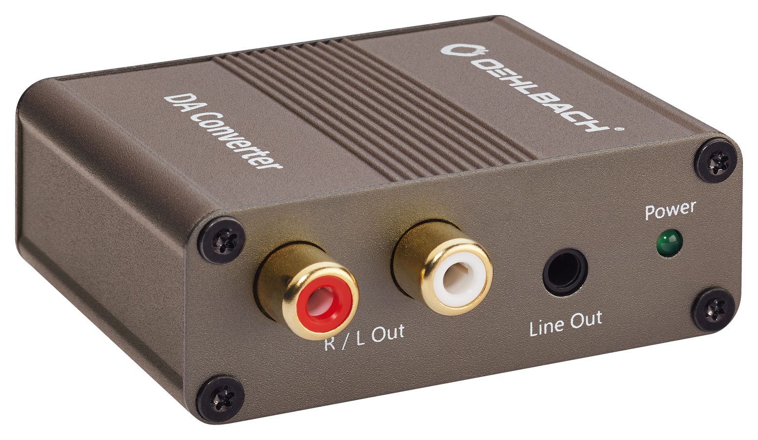 Der Oehlbach DA Converter der Extraklasse wandelt digitale in analoge Audiosignale. Dabei werden hochaufgelöst codierte Signale über einen koaxialen oder optischen Eingang aufgenommen. Mit Hilfe eines Schalters lässt sich der gewünschte Eingang bestimmen und die anschließende Ausgabe erfolgt über einen 2-Kanal-RCA-Ausgang. Im Inneren des Gerätes übernimmt ein hochwertiger Cirrus-Logic-Chip die verlustfreie Konvertierung von digital zu analog. Der handliche DA Converter ist geeignet für Audio-Quellen im PCM-Format und unterstützt Audiosignale bis zu 192kHz/24Bit. Zur Stromversorgung dient der USB-Anschluss oder der Netzteil-Stecker. (Dolby und DTS Formate werden nicht decodiert).