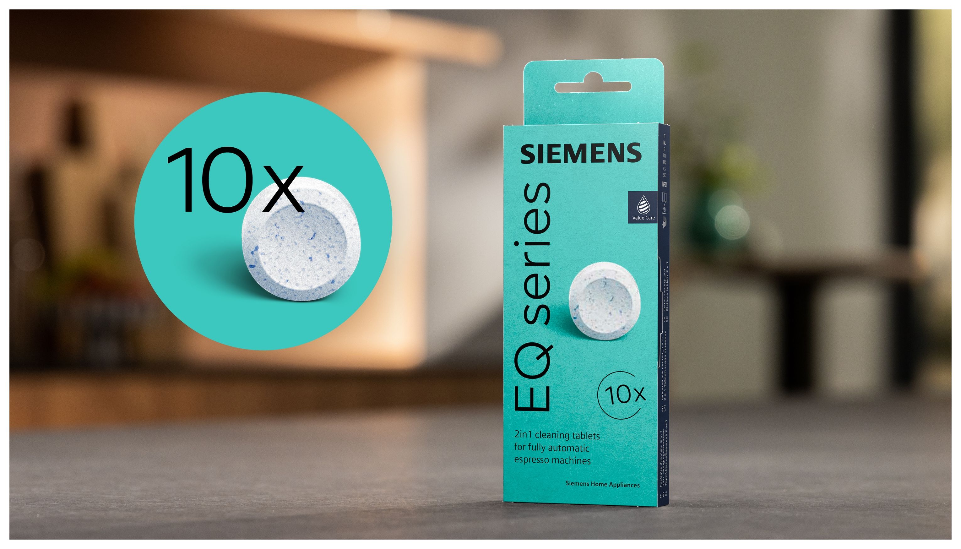 Großartiges Aroma und optimale Reinigung mit den EQ Reinigungstabletten – original von Siemens.