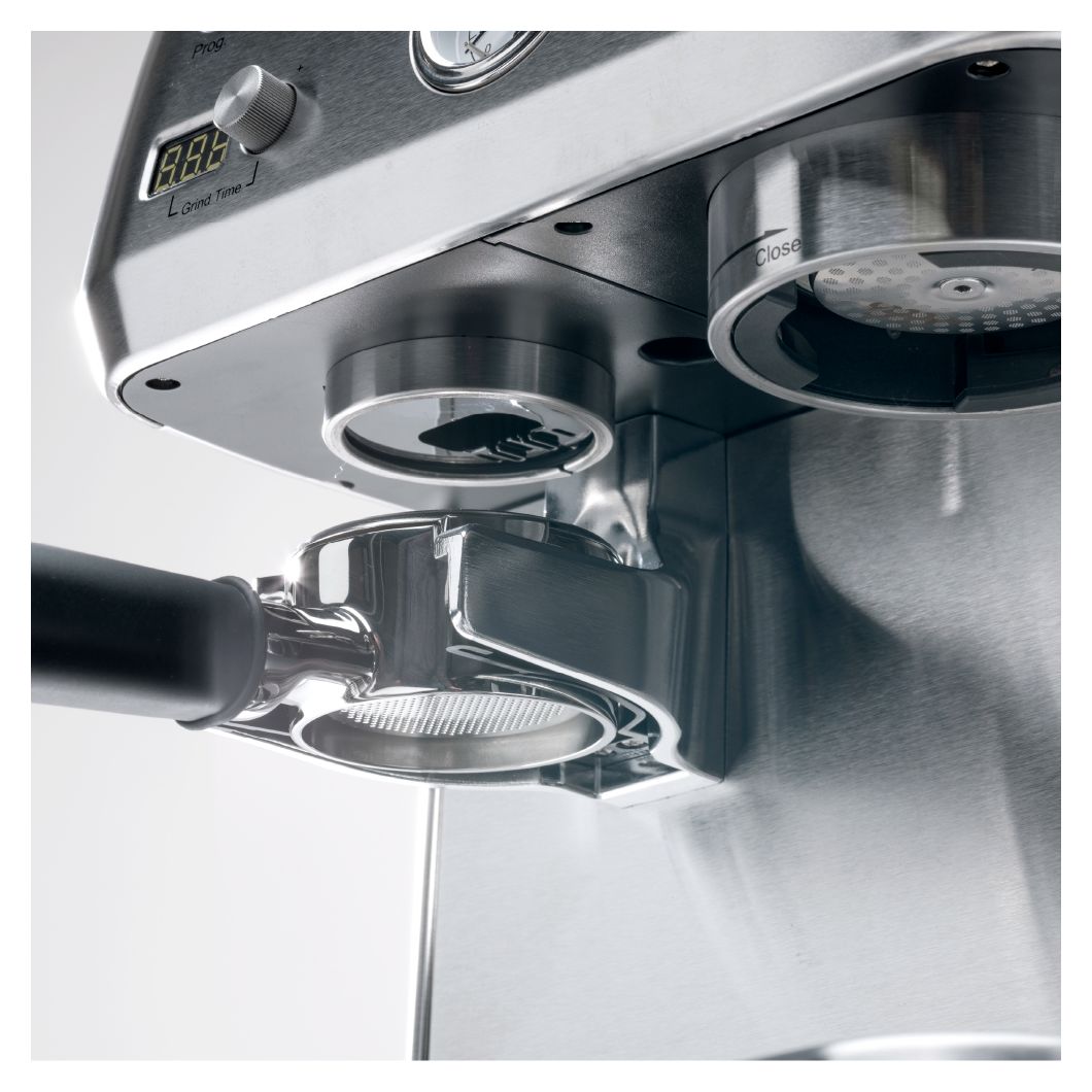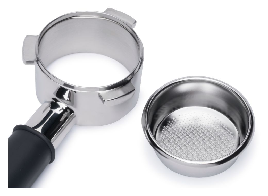 Der flache Boden des Siebträgers ermöglicht ein gleichmäßiges Tampen, um eine ausgewogene Extraktion zu erzielen.