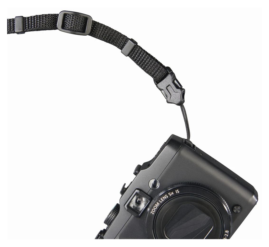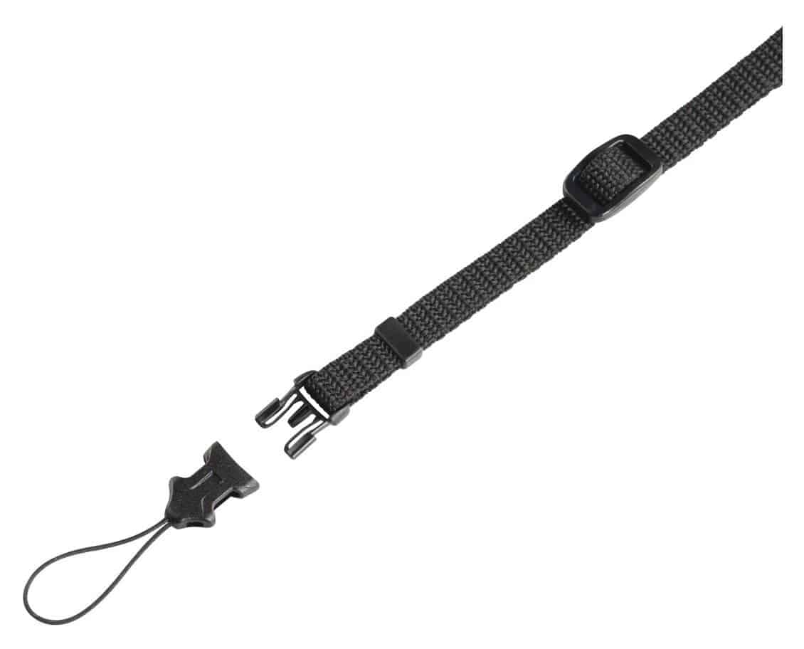 Kameragurt mit praktischen Schnellverschlüssen, speziell zur Befestigung an Kameras mit Ösen geeignet.
