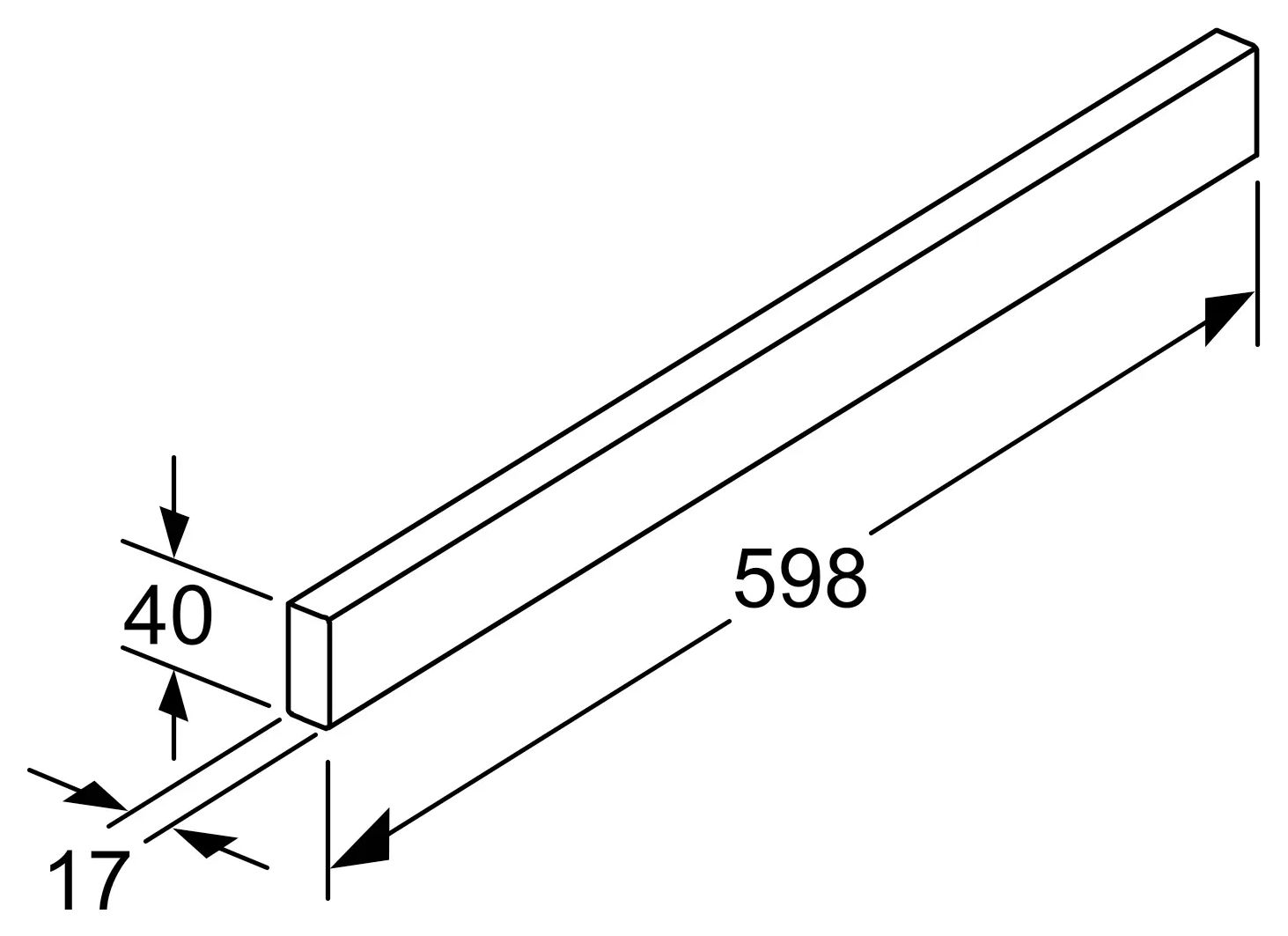 Bosch DSZ468B. Typ: Griffleiste der Dunstabzugshaube, Produktfarbe: Schwarz. Markenkompatibilität: Bosch. Breite: 17 mm, Tiefe: 598 mm, Höhe: 40 mm. Menge pro Packung: 1 Stück(e)