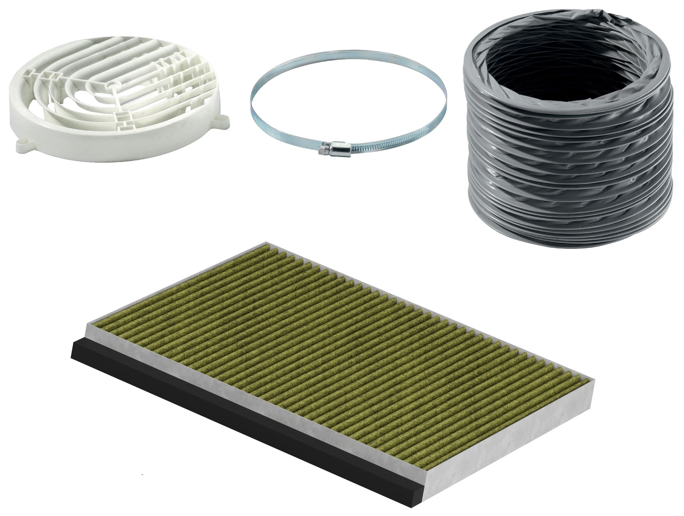 Passend für integrierte Designhauben. Lebensdauer wird durch Auffrischen im Backofen (3 Stunden bei 100 °C) um bis zu 4-mal verlängert. Kosten- und ressourcensparende Lösung. Optimierte, hochwirksame Geruchsreduzierung. Anti-Fisch-Funktion: Besonders geeignet, um intensive Gerüche wie Fischgeruch effektiv zu beseitigen. Anti-Pollen-Funktion: Der Filter hält eine extrem hohe Menge an Pollen aus der Luft zurück und neutralisiert die darin enthaltenen Allergene. Leicht zugängliche Geruchsfilter für bequeme Wartung und problemlosen Filterwechsel. Bestehend aus 1 Long-life Clean Air Aktivkohlefilter, Diffusor, flexiblem Schlauch ø 150 mm, Schlauchschelle und Befestigungsmaterial.