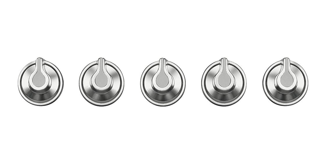 Smeg 5MP1GOG. Typ: Steuerknopf, Produktfarbe: Silber, Geeignet für folgende Kochfelder: Gas. Gewicht: 800 g, Verpackungsbreite: 150 mm, Verpackungstiefe: 110 mm. Menge pro Packung: 5 Stück(e). Ursprungsland: Italien