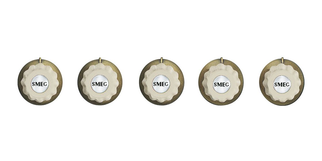 KIT Bedienknebel im Cortina Design, für Nostalgie Glaskeramikkochfelder P875PO, P864PO, Creme, Messing-Antik (5 St.)