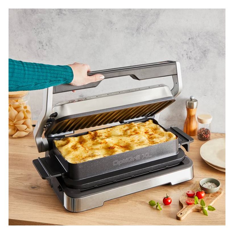 Dank dieses Backschalen-Zubehörs verwandeln Sie Ihren OptiGrill in einen Backofen und ein Gerät, das eine vollständige Mahlzeit zubereiten kann, für mehr Vielseitigkeit bei Ihren täglichen Mahlzeiten. Die hitzebeständigen Griffe erleichtern den Transport und das Servieren am Tisch, während das spülmaschinenfeste Design aus Aluminium-Druckguss die Reinigung zum Kinderspiel macht. Genießen Sie eine große Auswahl an köstlichen, gesunden Rezepten, die perfekt für Familien mit bis zu 8 Personen geeignet sind.