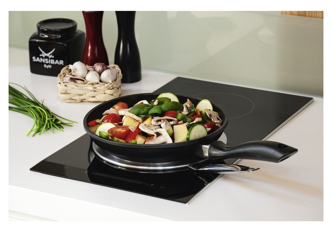 - ein langer, isolierter Griff erleichtert die Handhabung mit der Induktionskochfeld-Adapterplatte und verhindert Verbrennen