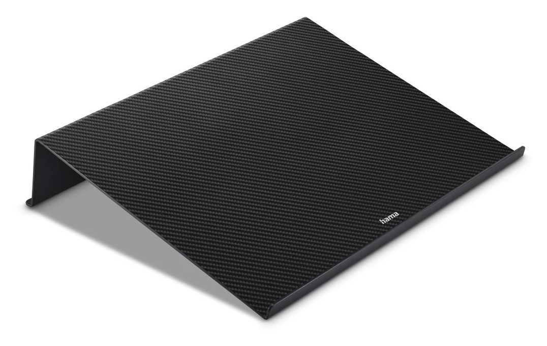 Sieht gut aus: die Laptop-Halterung in ansprechender Carbon-Optik kann sich auf dem Schreibtisch sehen lassen, ob Büro oder Home-Office