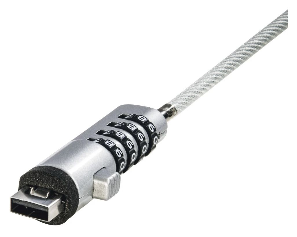 Laptopschloss "USB", Zahlenschloss 4-stellig, Carbonstahl, Silber