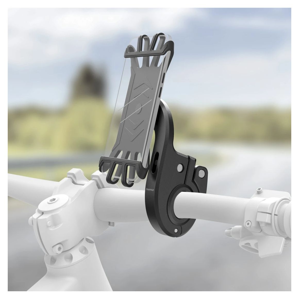 schnell und einfach anbringen, starker Halt für unterwegs: flexible Handyhalterung zur sicheren Befestigung eines Smartphones an der Lenkstange eines E-Bikes, Pedelecs, Fahrrads oder E-Scooters