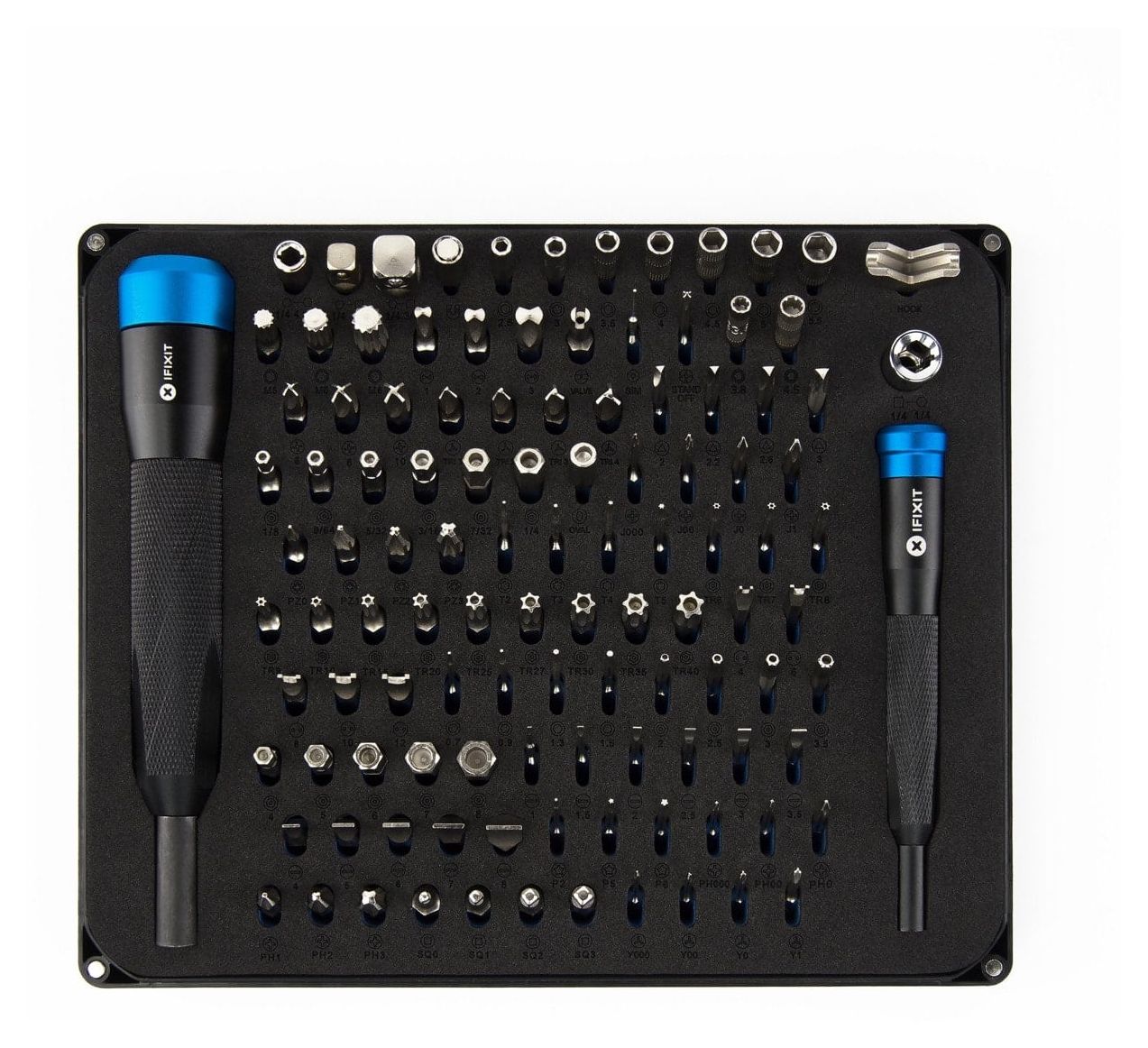 iFixit EU145392. Material: Stahl, Schraubendreher-Bits enthalten: 12-Kerben-Flansch, Flach, Hex (metrisch), JIS B 1012, Mutterndreher, Pentalobe, Phillips,..., Phillips Schraubendreher-Bits: PH 0, PH 00, PH 000, PH 1, PH 2, PH 3