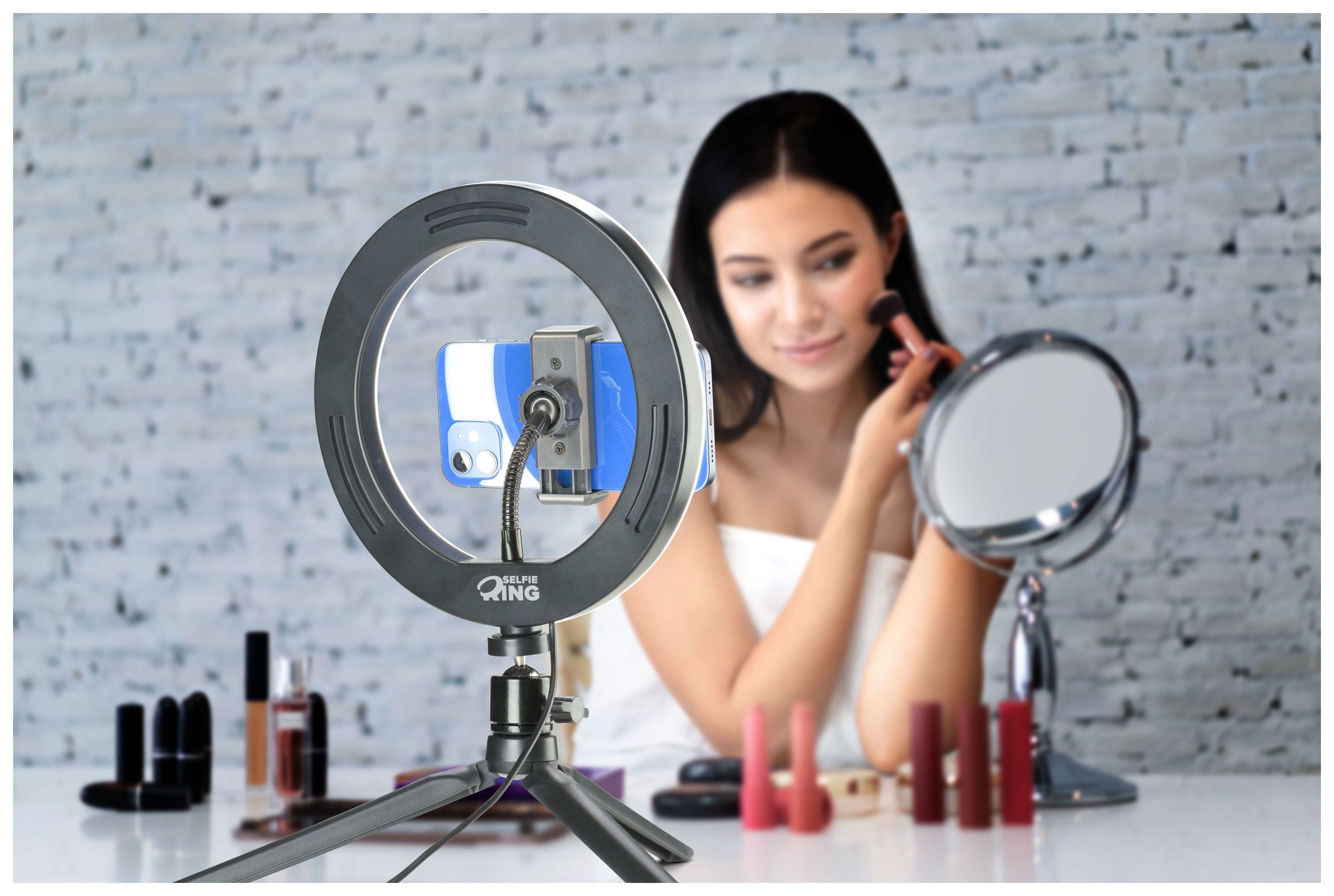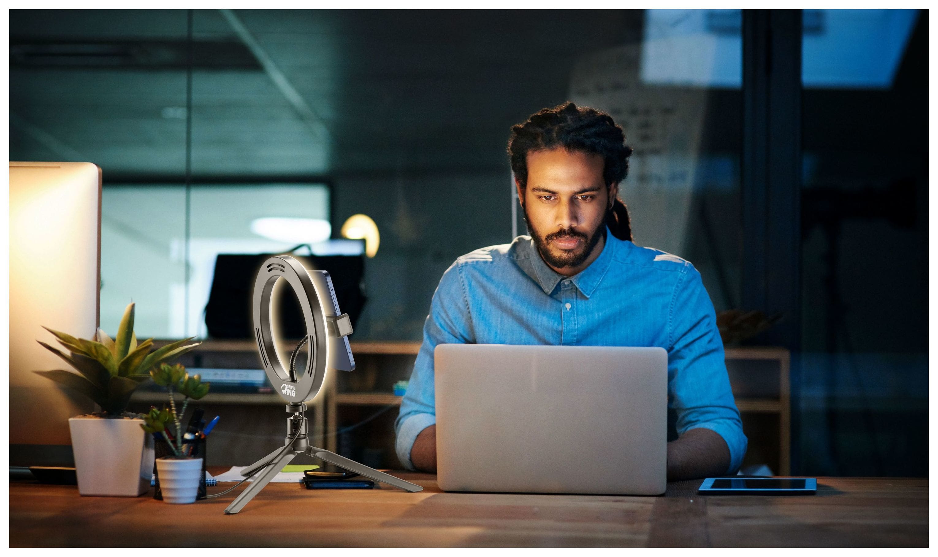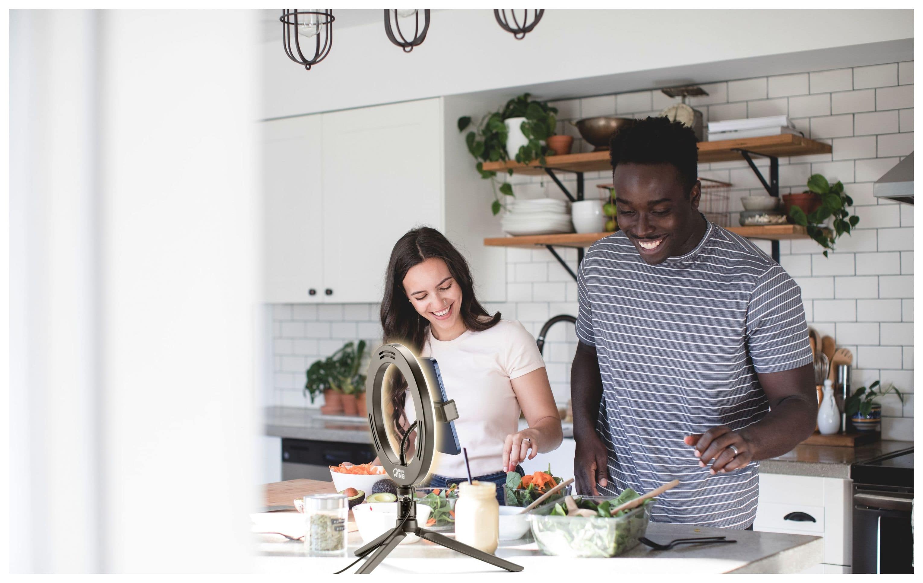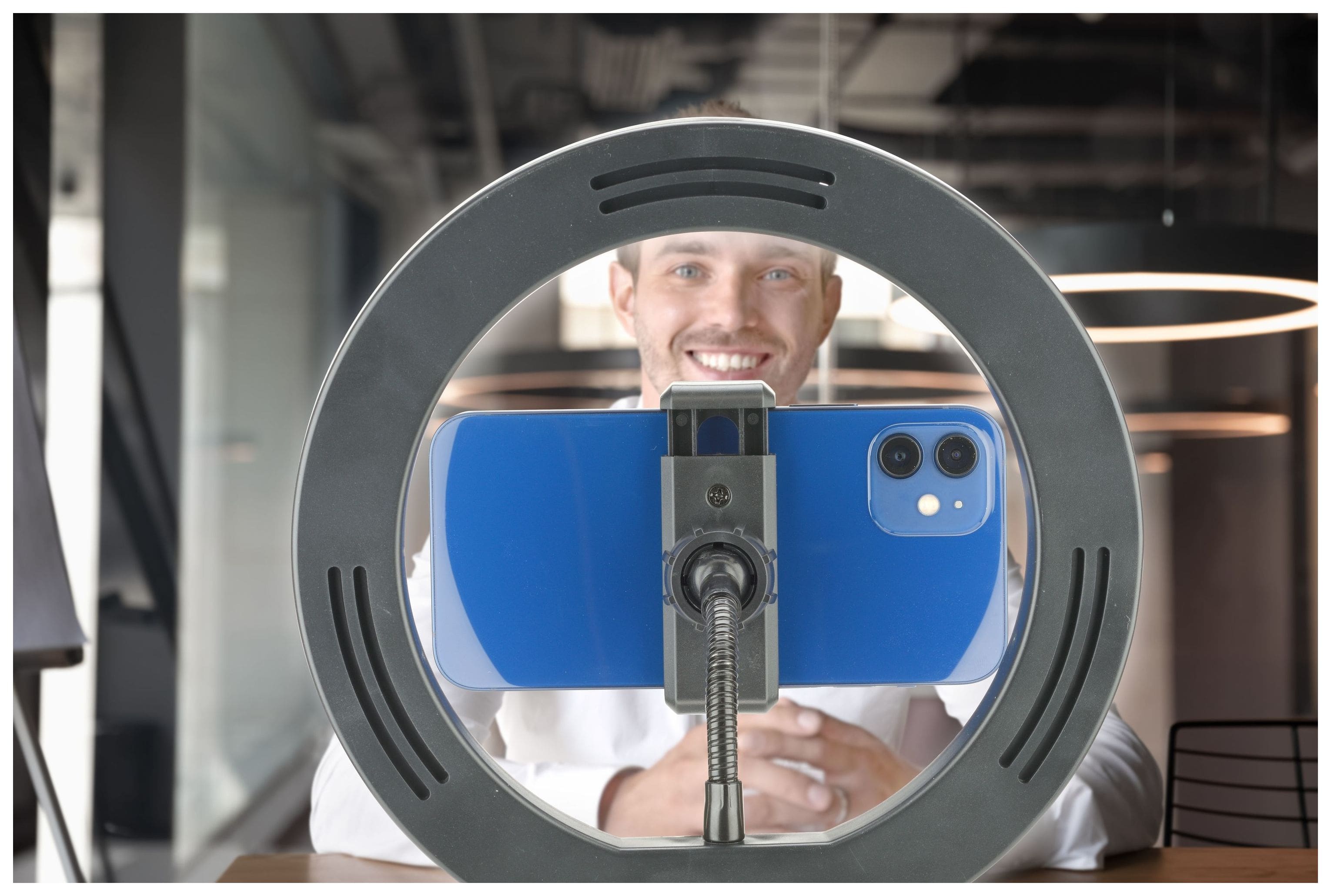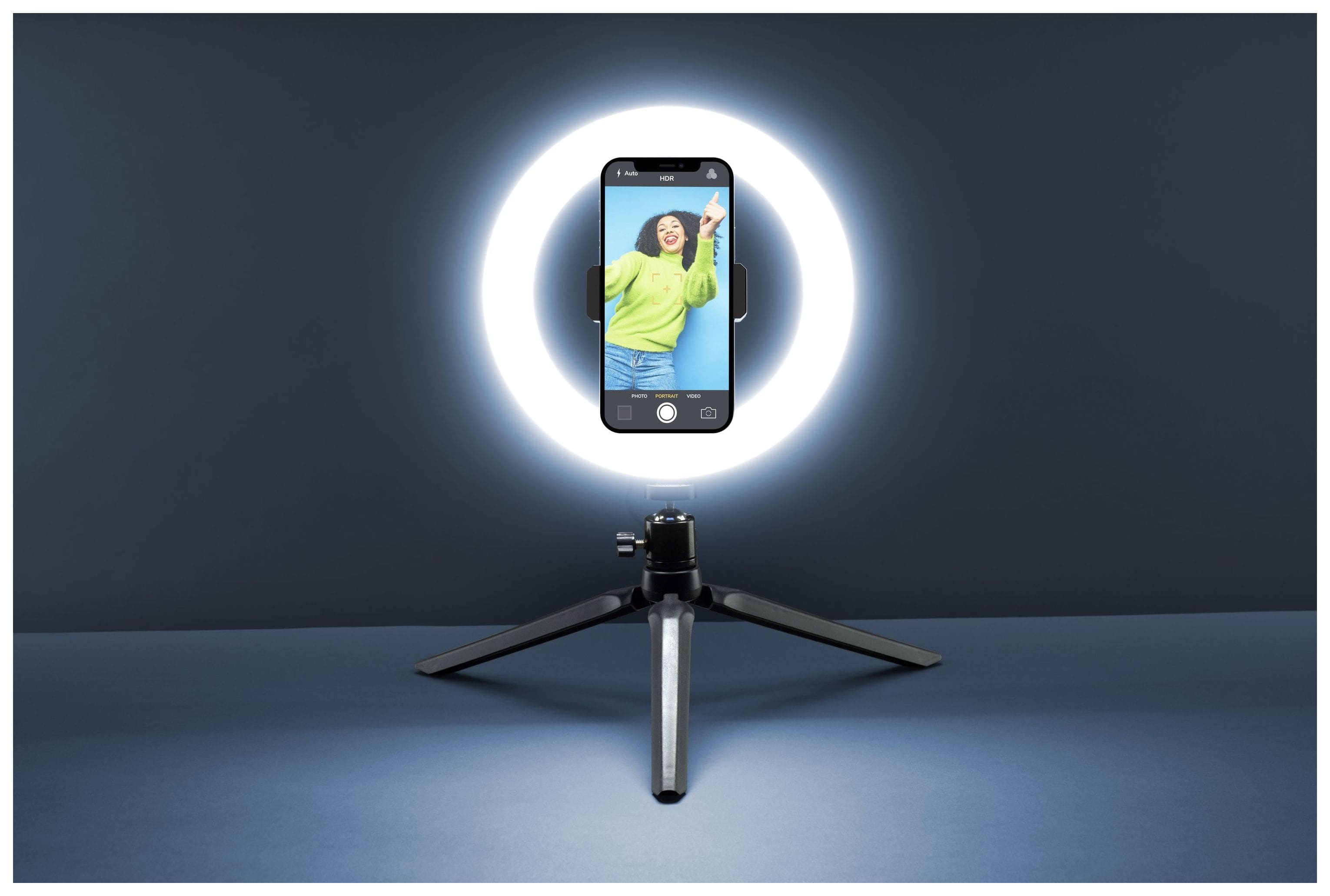 Für Videoaufnahmen und Selfies gibt es SELFIE RING, das Smartphone-Stativ mit Leuchtring, das jeden Ort in ein Filmset verwandelt! Der LED-Ring verfügt über drei Beleuchtungsmodi, die per Fernbedienung aktiviert werden können, und das Stativ ist für professionelle Aufnahmen einstellbar und drehbar.