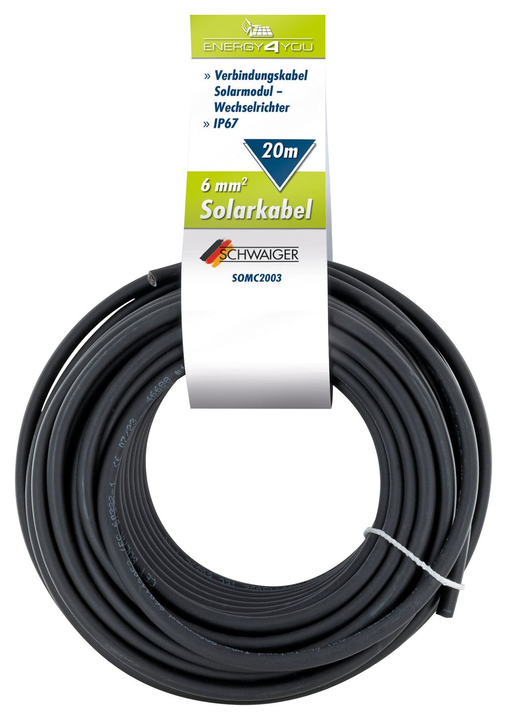 Das SCHWAIGER® Solarmodul-Anschlusskabel ermöglicht eine zuverlässige und effiziente Übertragung von Strom zwischen den Solarmodulen und dem Wechselrichter und gewährleistet dabei höchste Leistung wie Sicherheit. Die Länge von 20 Metern bietet Ihnen die Freiheit, Ihre Solarmodule flexibel zu positionieren und die bestmögliche Sonneneinstrahlung zu nutzen. Zudem ist es UV-beständig, witterungs- und temperaturfest, was eine langfristige und zuverlässige Nutzung gewährleistet.