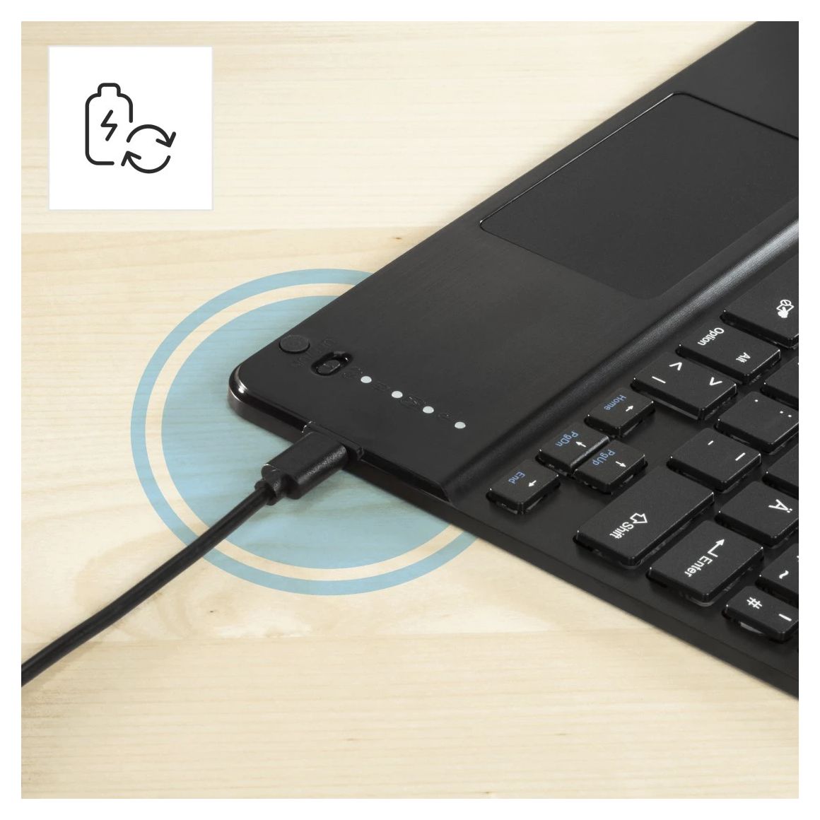 Keine Maus nötig: die handliche Tastatur mit Touchpad vereinfacht die intuitive Bedienung wie am Laptop – ohne Wechsel zwischen Tippen auf dem Keyboard und Wischen auf dem Bildschirm
