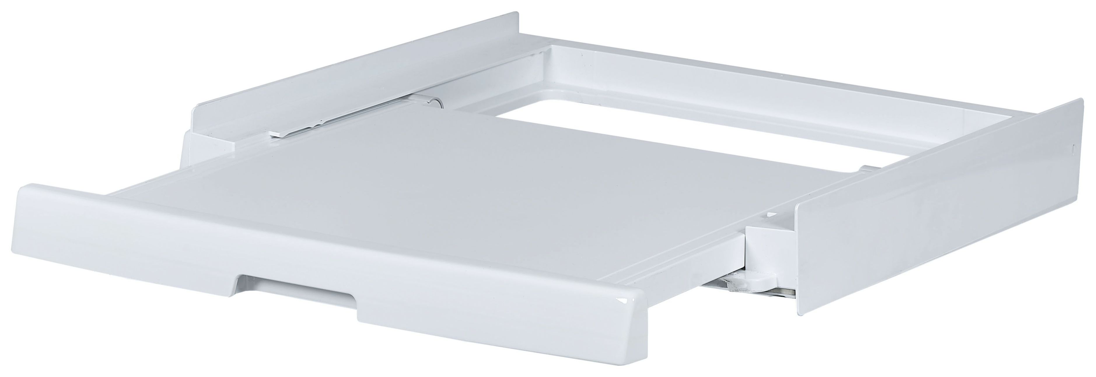 Entdecken Sie unseren Zwischenbaurahmen mit ausziehbarer Ablagefläche. Durch diesen lässt sich der Trockner sicher und platzsparend auf der Waschmaschine installieren. Der Haier Zwischenbaurahmen mit Schiebeboden erleichtert das Be- und Entladen der Wäsche. Seine bequeme Höhe ermöglicht es, die Wäsche beim Entleeren des Trockners zu falten, ohne sich zu bücken.