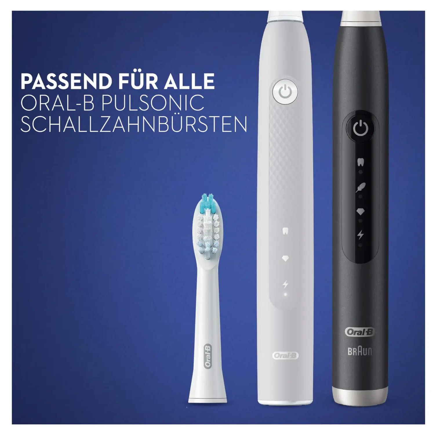 Erleben Sie unsere Pulsonic Clean Aufsteckbürste für eine gründliche Reinigung. Der längliche Bürstenkopf entfernt mit sanfter Schall-Technologie mehr Plaque als eine herkömmliche Handzahnbürste und ist kompatibel mit allen elektrischen Pulsonic Schallzahnbürsten von Oral-B.
