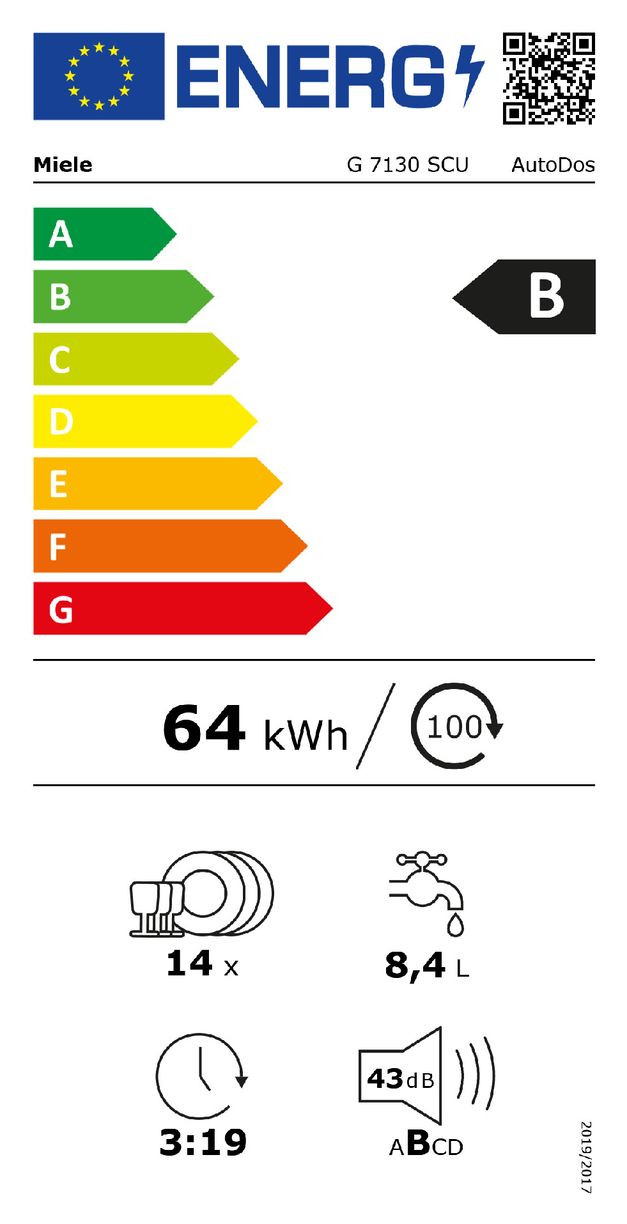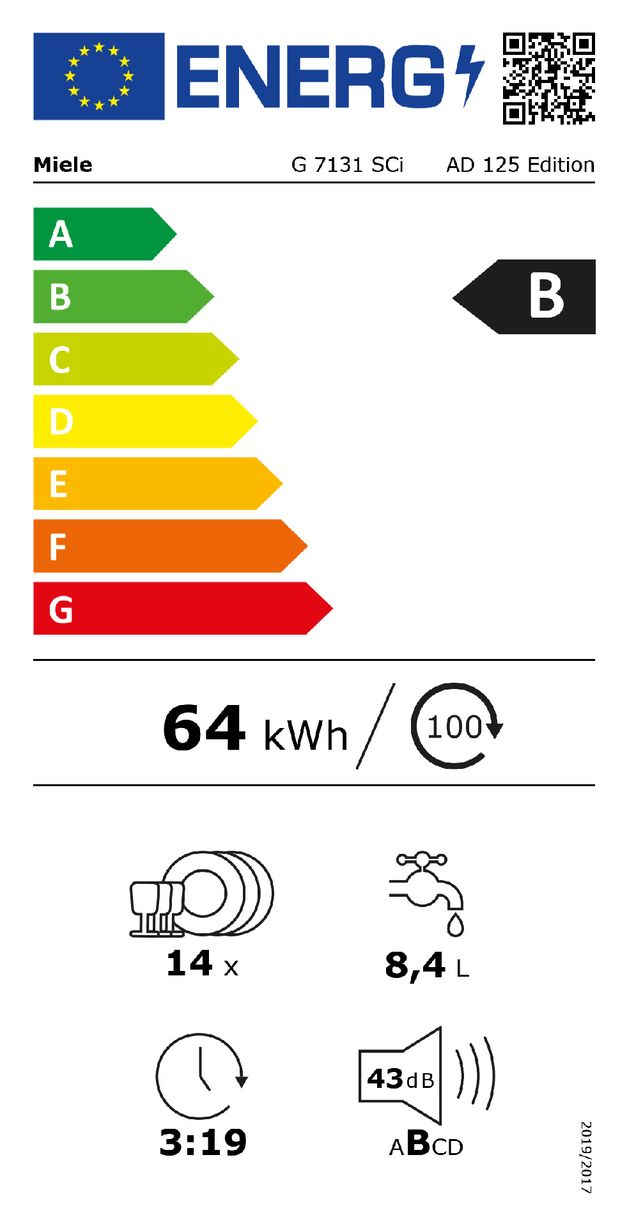Miele Spülmaschinen bieten Ihnen modellabhängig eine unterschiedliche Auswahl an Spülprogrammen. Je nach gewählter Reinigungs-Intensität, Temperatur und Dauer des Spülvorgangs variiert natürlich der Energieverbrauch. Wie wirtschaftlich Ihr Geschirrspüler grundsätzlich arbeitet, können Sie auf dem Energieetikett ablesen. Die neue Skala der Energieeffizienzklassen reicht von A bis G, wobei die oberen Klassen Geschirrspülern zukünftiger Generationen vorbehalten sind. Aktuelle Spülmaschinen von Miele rangieren beispielsweise mit 74 kWh für 100 Zyklen im ECO-Modus bei einer Kapazität von 13 oder 14 Maßgedecken in der Energieeffizienzklasse C. Aber auch oft sehr günstige Modelle können mit einem 100-Zyklen-Verbrauch von 95 kWh die Anforderungen der Energieeffizienzklasse E erfüllen. Bei den platzsparenden 45-cm-Spülmaschinen beginnt der Verbrauch bei 62 kWh für 100 Spülvorgänge und reicht bis etwa 78 kWh. Angesichts der geringeren Kapazität, erfolgt dabei eine Einordnung in die Energieeffizienzklassen D beziehungsweise F.