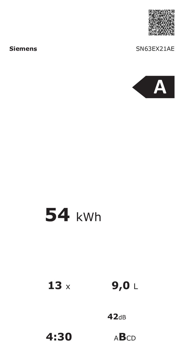 - Energieeffizienzklasse: Die meisten Siemens Geschirrspülmaschinen sind in Energieeffizienzklasse A+++ einzuordnen, die derzeit beste Energieeffizienzklasse (Stand: September 2020).