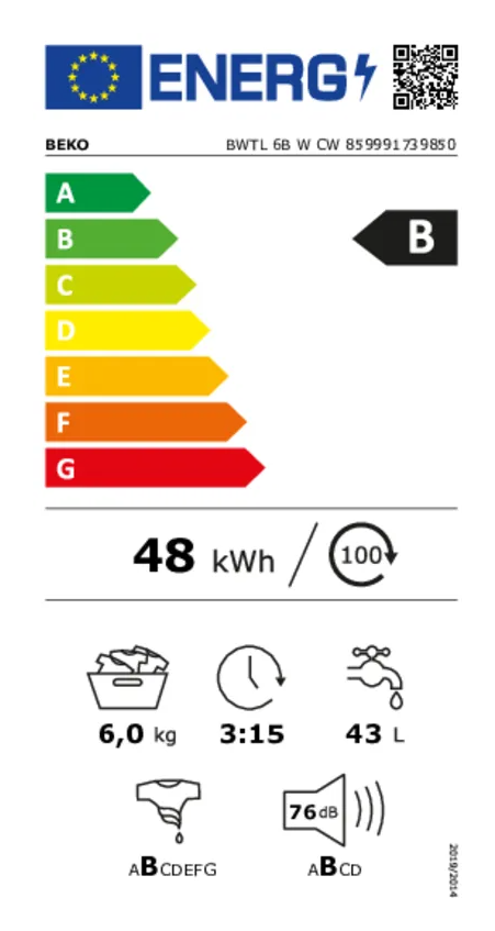 - Die Energieeffizienzklasse: Sie gibt generell Aufschluss darüber, wie energiesparend ein Gerät ist. Die Skala reicht von A (dunkelgrün) bis G (rot). Wobei A die beste Klasse ist und G die schlechteste.